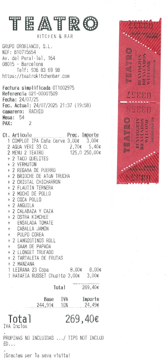 Welcome to Teatro kitchen & bar, a culinary gem nestled in the vibrant heart of Barcelona. This restaurant redefines dining with its innovative surprise tasting menu, highly praised by honeymooners and food enthusiasts alike. Patrons rave about an array of over 35 small dishes, allowing for delightful returns and new experiences with each visit.